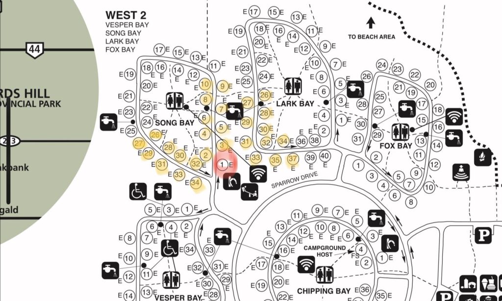 Place: Bird’s Hill Campground (Song Bay, Lark Bay, Vesper Bay) see below for map and information